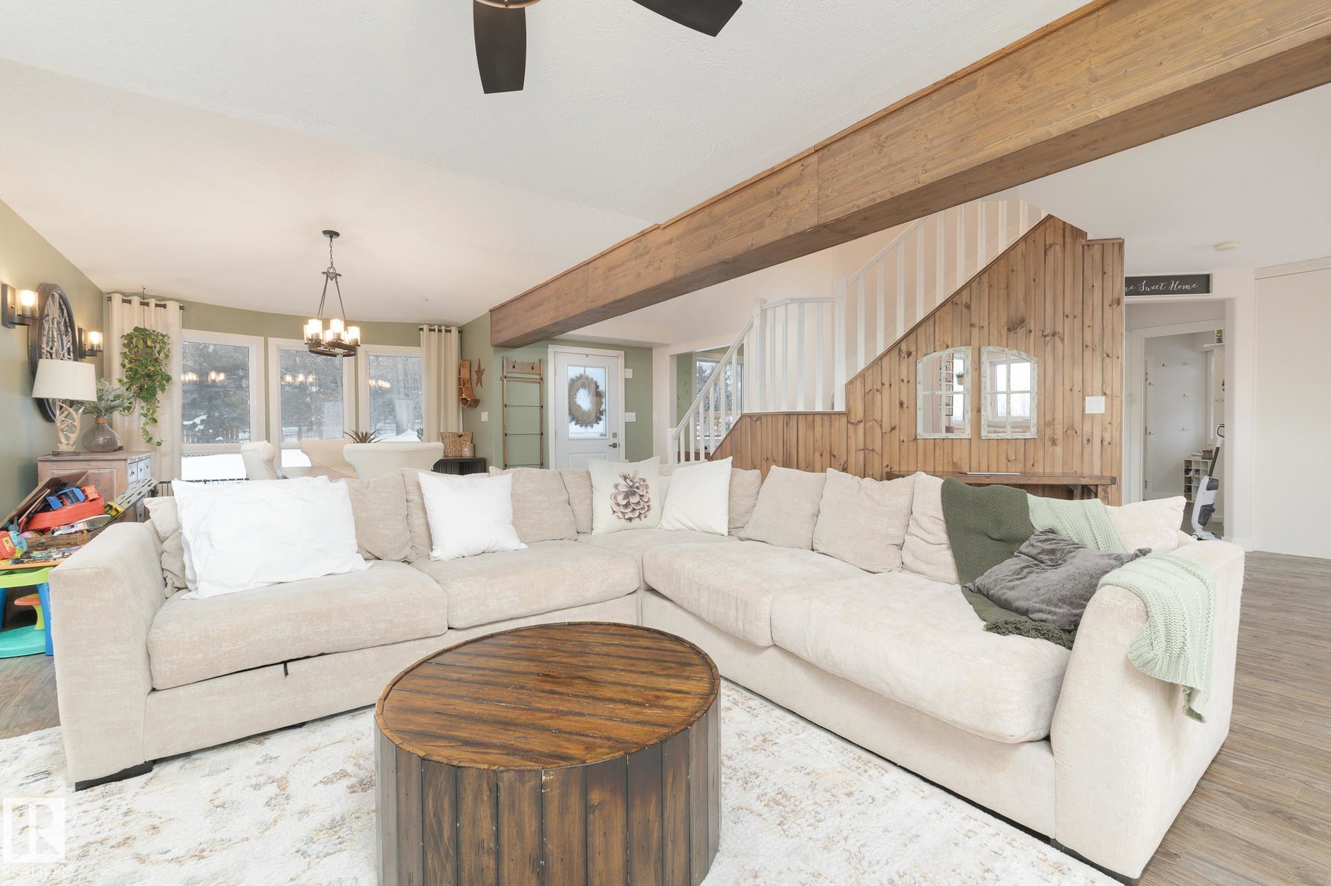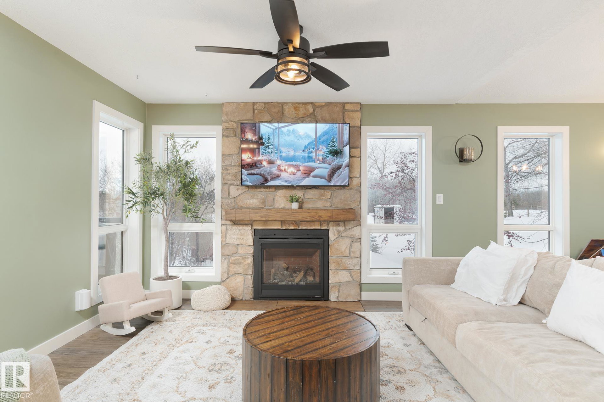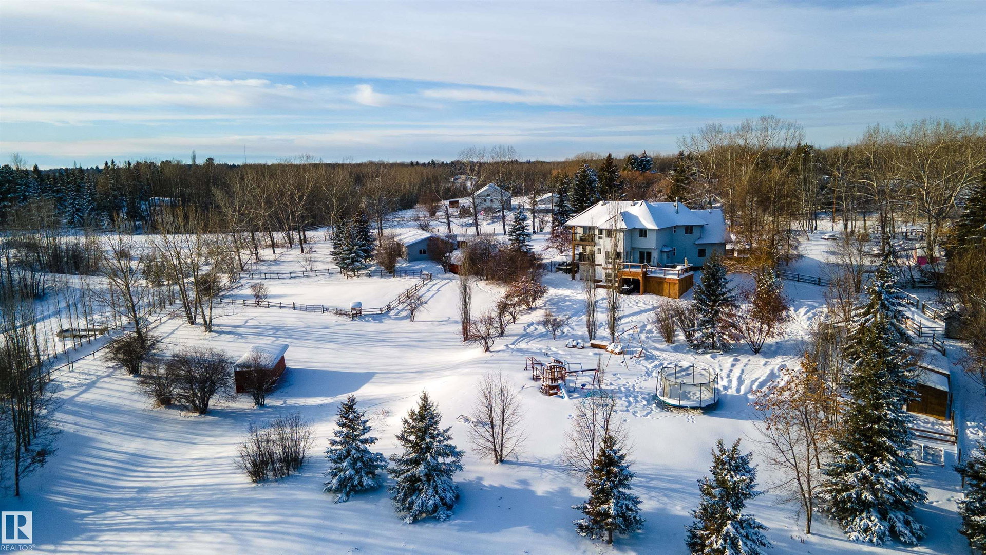 Nestled on 3.19 acres in sought-after Hillside Estates, this custom 2600+ sq ft two-storey with walkout basement captures breathtaking east-facing views and a design unlike anything else on the market. Offering 4 bedrooms, 3.5 bathrooms, a main floor den, and multiple inviting living spaces, this home has been beautifully renovated over the past five years. Featuring updated flooring, a stunning kitchen, refreshed bathrooms, newer furnaces, shingles, and more. With pavement right to the front door and quick access to Stony Plain, Chickakoo Lake, and nearby amenities, the location is as exceptional as the home itself. A detached garage adds storage and hobby space, while the property is fully set up for true acreage living. With generous flex areas throughout, this is a rare opportunity for growing families seeking space, style, and a one-of-a-kind setting. Opportunities like this don’t wait.